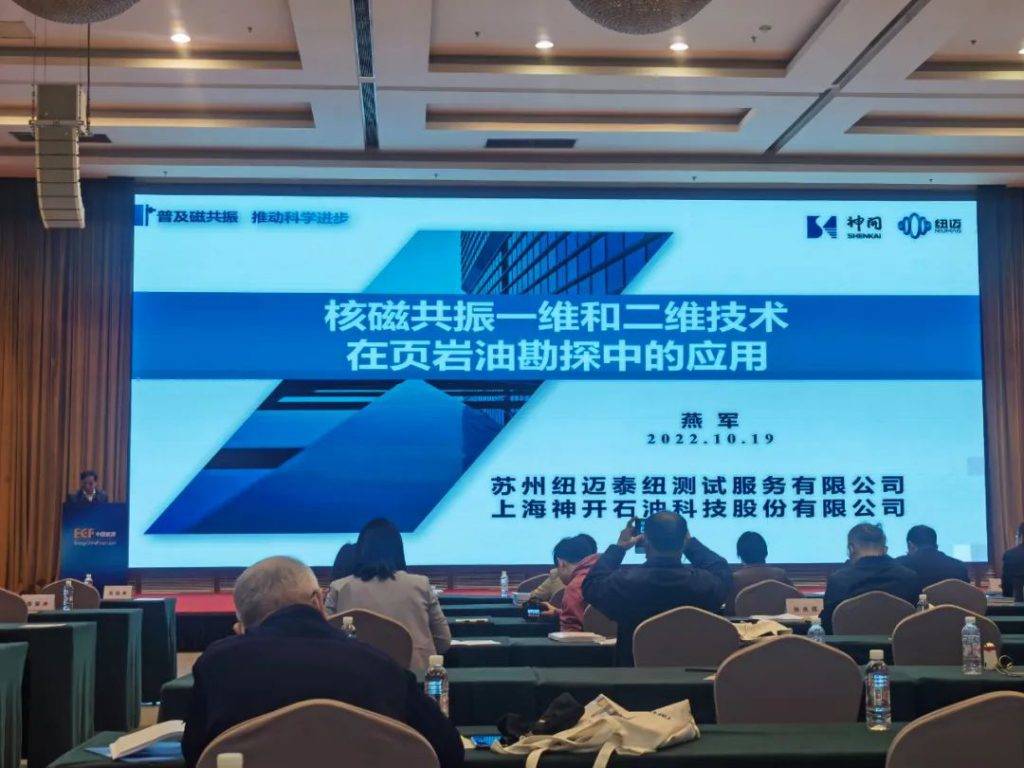 紐邁國家級博士后工作站站長燕軍教授也在大會上做報告,主題是核磁共振一維和二維技術在頁巖油勘探中的應用。