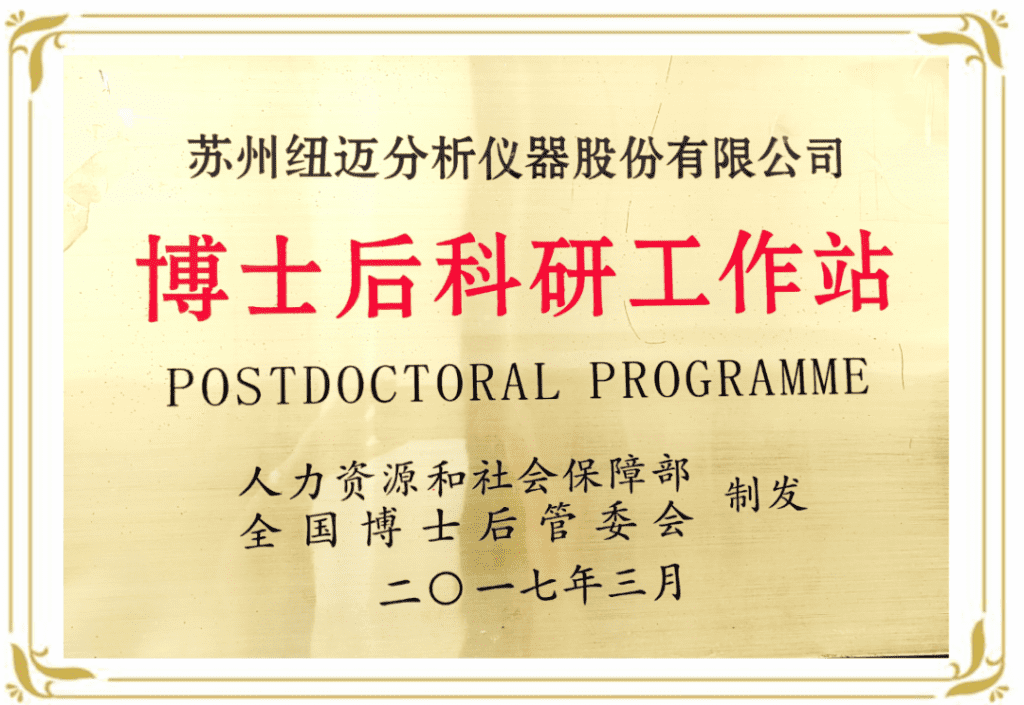 蘇州紐邁分析儀器股份有限公司自2003年成立以來,一貫致力于“低場核磁共振”儀器的研發(fā)、生產(chǎn)與技術(shù)應(yīng)用的推廣,產(chǎn)品應(yīng)用于農(nóng)業(yè)、食品、能源勘探、高分子材料和生命科學(xué)等行業(yè)領(lǐng)域。該公司發(fā)展迅猛,目前已經(jīng)成為“低場核磁共振技術(shù)”這一新興分析儀器產(chǎn)業(yè)最具發(fā)展活力和潛力的高新企業(yè)。?紐邁分析的創(chuàng)新實(shí)踐基地博士后工作站也發(fā)展迅速,?紐邁分析博士后科研工作站于2014年11月經(jīng)江蘇省人力資源部和生活保障部批準(zhǔn)成立。2017年4月,該博士后科研工作站經(jīng)國家人力資源和社會勞動保障部批準(zhǔn)升格為國家級博士后科研工作站,并于同年7月正式授牌。