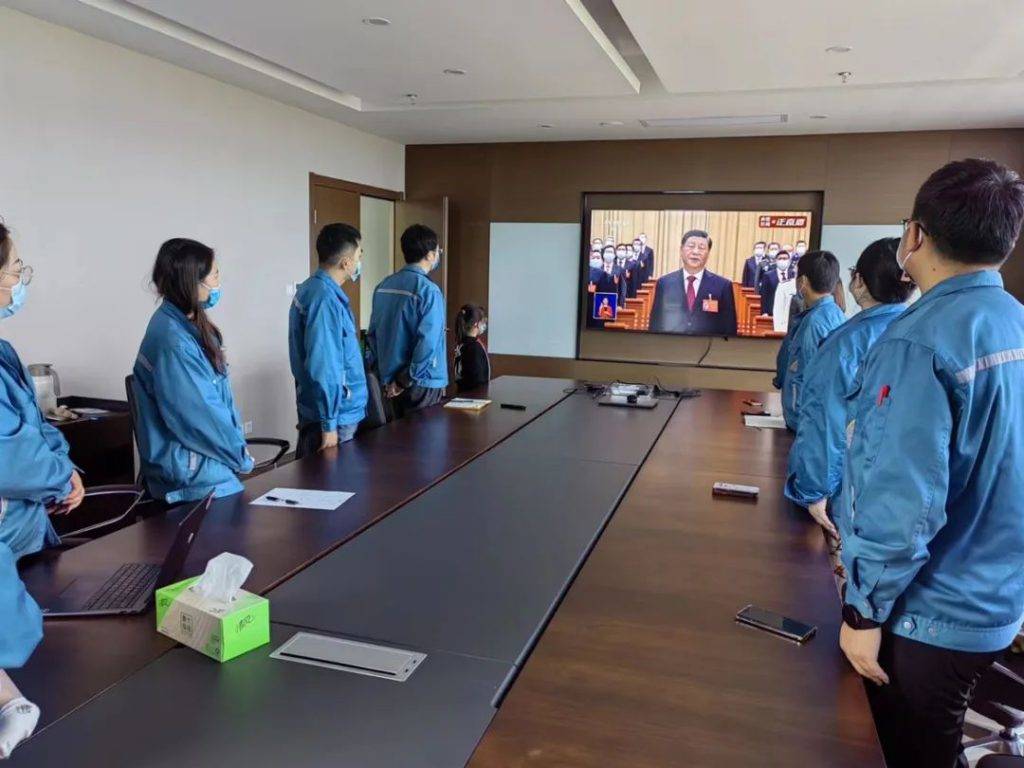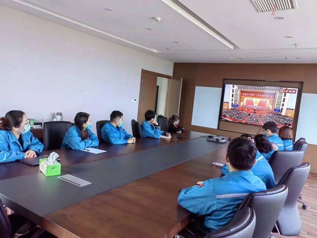 在這歷史性時刻,中國共產黨紐邁黨支部組織公司20多名黨員和職工代表觀看黨的二十大開幕會,認真聆聽總書記的工作報告。