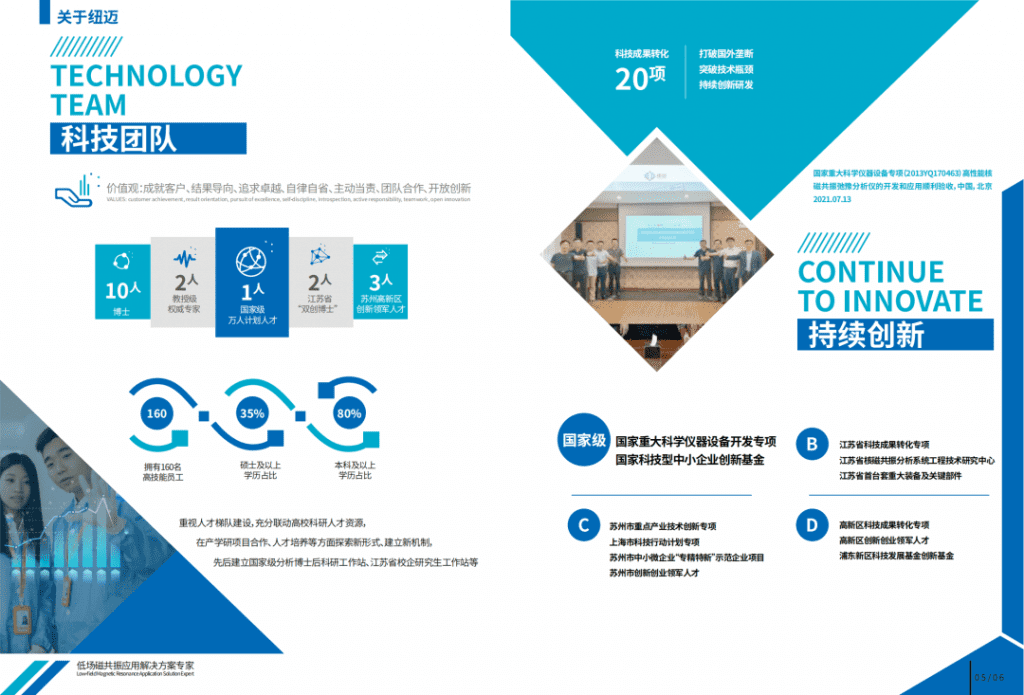 紐邁專注于“核磁共振”技術及應用推廣,主營業務為低場核磁共振設備的研發、生產與銷售及應用測試服務,是國家高新技術企業。?