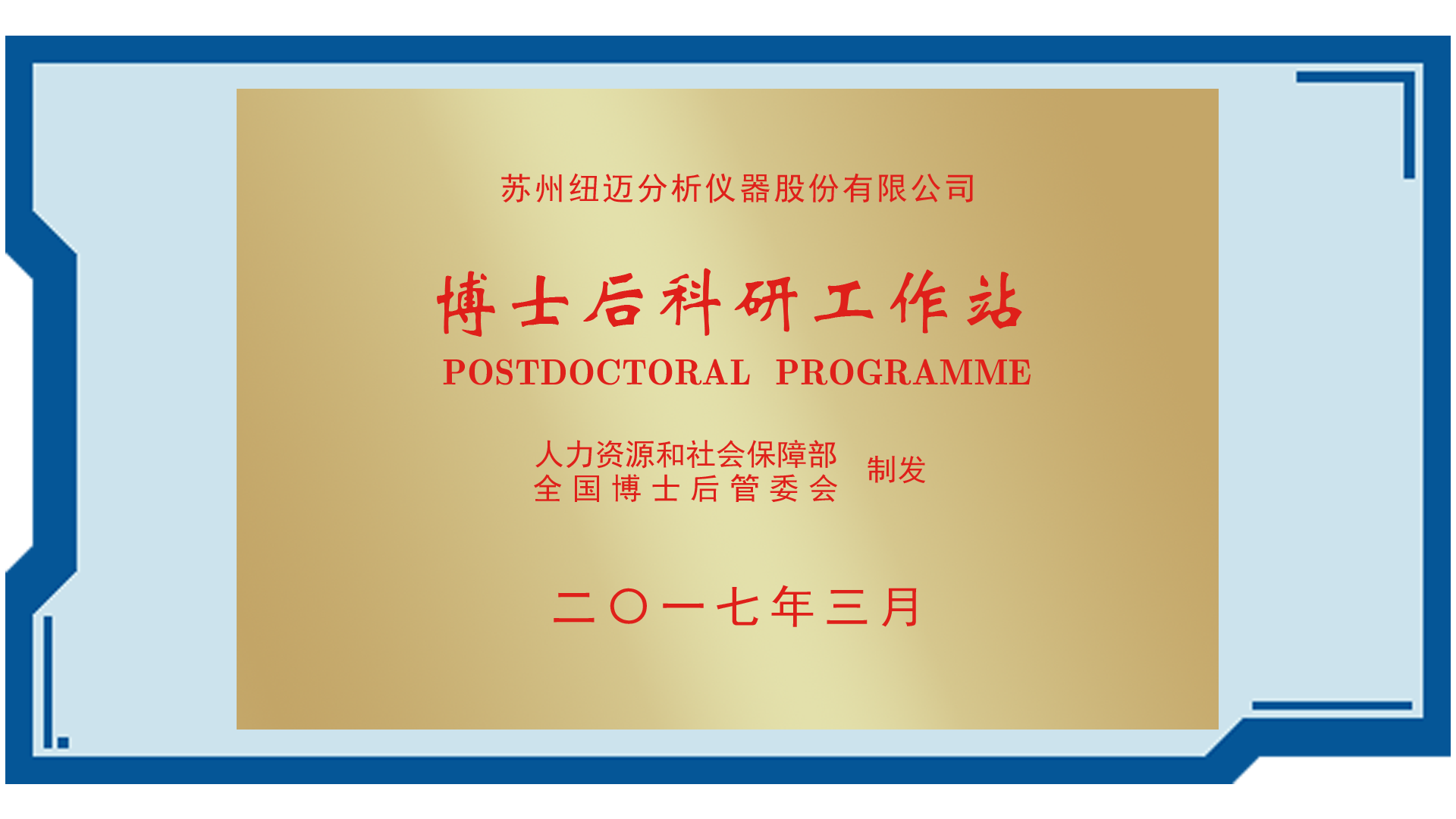 紐邁分析博士后工作站由省級晉升為“國家級博士后科研工作站”。