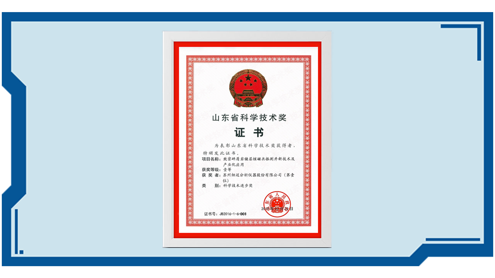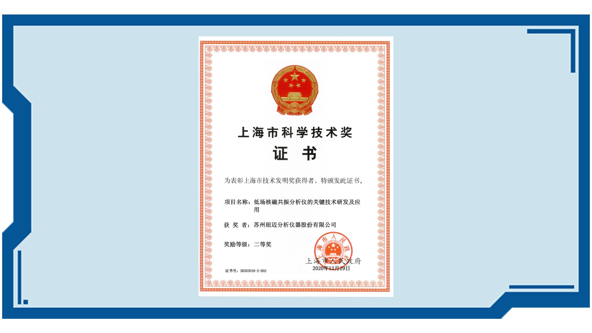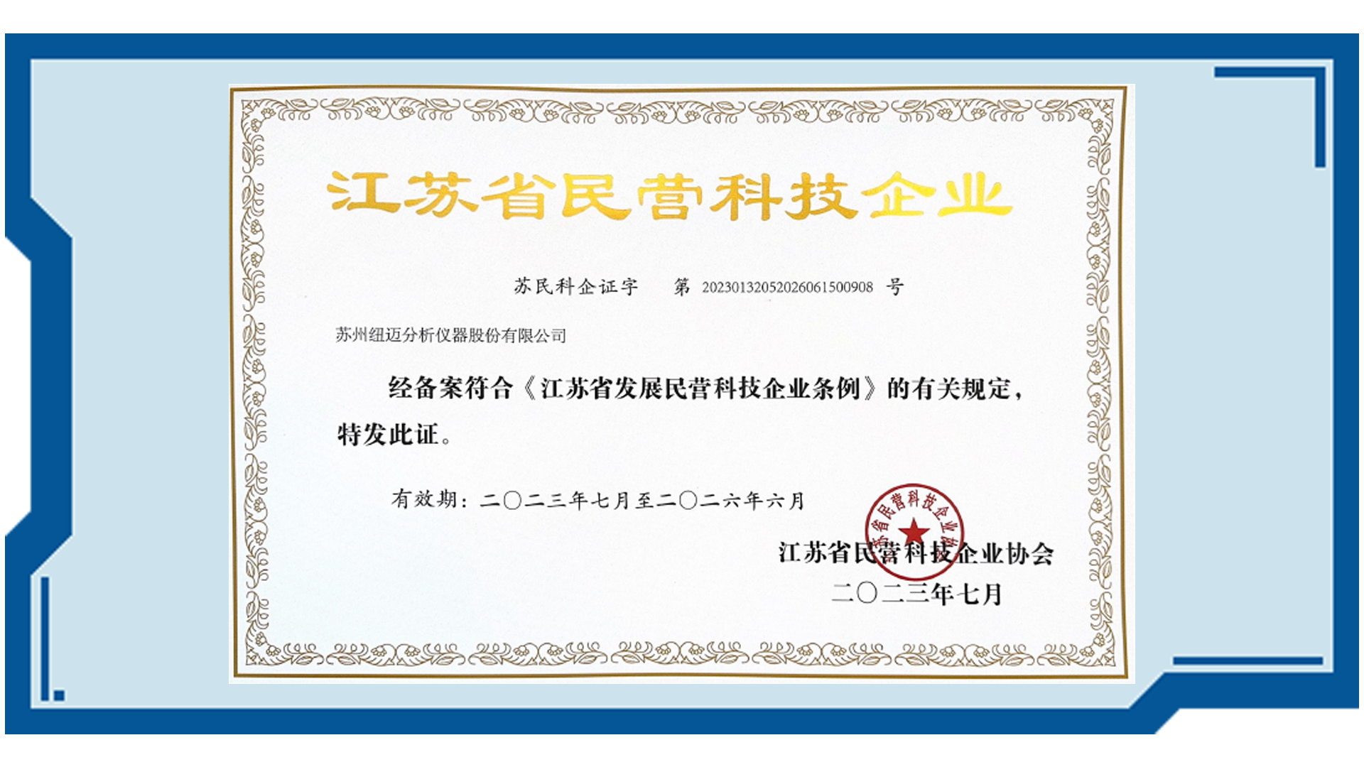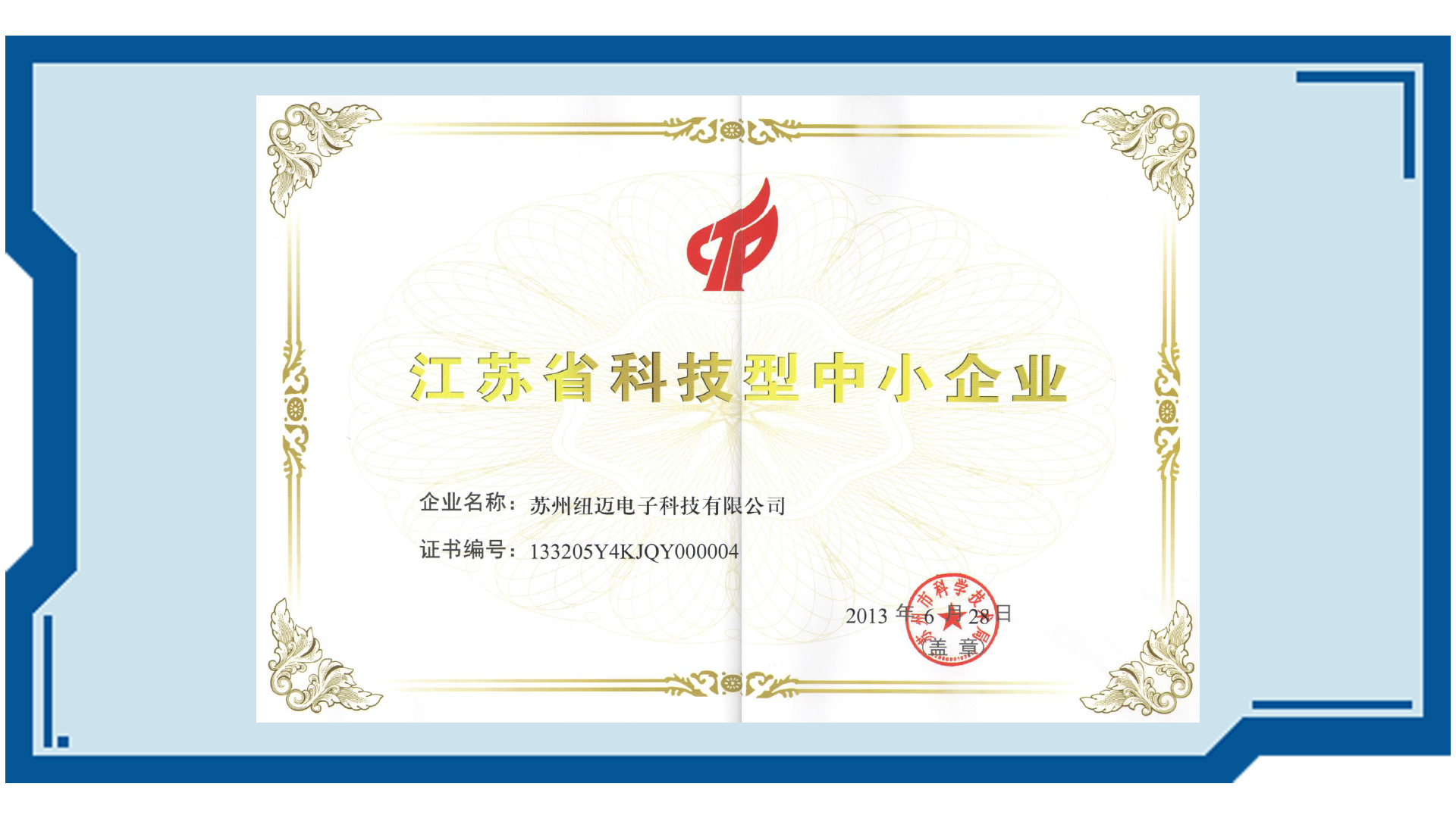 紐邁分析落戶蘇州國家高新技術開發區,被認定為國家高新技術企業,獲國家級科技成果獎、優秀成果獎、優秀企業標準獎、重點新產品獎