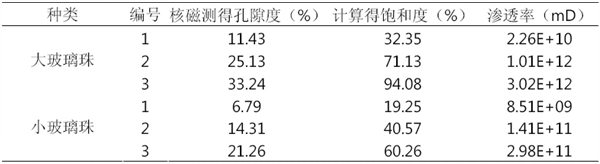飽和度計算是在孔隙度的基礎之上的,所以其準確度與孔隙度的準確度密切相關。滲透率隨著水量增加而增加,且在同級別飽和度下,大玻璃珠內滲透率大于小玻璃珠。核磁共振成像小玻璃珠成像