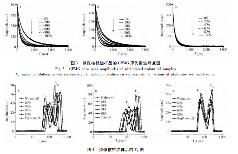 低場(chǎng)核磁共振技術(shù)因具有快速、無損、準(zhǔn)確,且無需任何化學(xué)試劑等優(yōu)點(diǎn),現(xiàn)已廣泛應(yīng)用于食品行業(yè)。下面簡單介紹利用低場(chǎng)核磁共振分析儀,以純核桃油及摻入大豆油、玉米油、葵花油的摻假核桃油為研究對(duì)象,結(jié)合化學(xué)計(jì)量學(xué)方法分析處理樣品的( CPMG) 回波數(shù)據(jù)及實(shí)際摻假值,對(duì)核桃油品質(zhì)進(jìn)行評(píng)價(jià)。