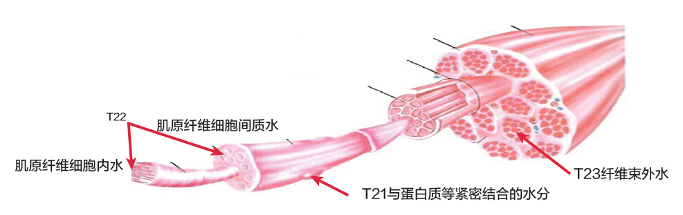 不同相態水分、含量、運動狀態、遷移特性影響肉品的持水性、嫩度、多汁性、物理參數、貨架期等。利用該特點,核磁共振技術能實現在線、無損、快速分析肉品的品質變化。
