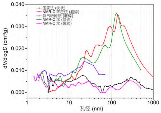 常規的核磁共振弛豫法不能反映孔隙的絕對孔徑,需要進行系數換算得到孔徑分布。而核磁共振冷凍測孔法不但具有常規核磁共振技術的優勢,還能提高微孔、中孔的測試精度,測試范圍也能滿足低滲頁巖的需求。