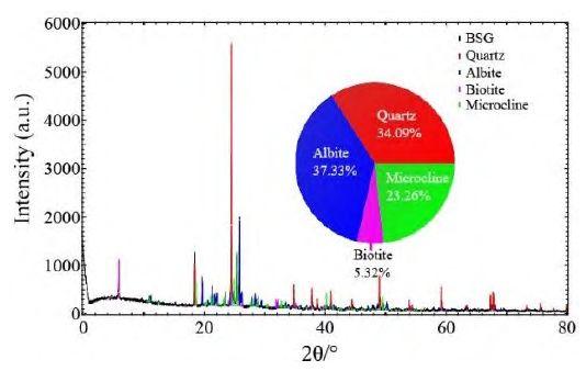 通過對芯樣進(jìn)行XRD衍射分析,其礦物主要成分為60.59%長石,34.09%石英,5.32%黑云母。