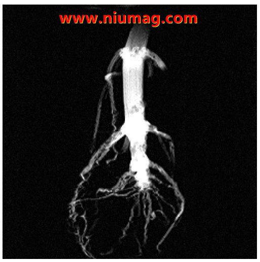 根系在植物生長發(fā)育中具有重要作用,但由于根系生長在不透明的土壤中,缺乏快速、準確、無損的原位觀測方法,影響了對植物根系的深入研究。傳統(tǒng)的根系研究方法采樣破壞性大、工作量大、準確性較低。核磁共振成像是一種無損檢測手段,成像分辨率較高。基于植物發(fā)育研究的核磁共振成像裝置則給植物根系全生育期成像提供了一個更加優(yōu)越的研究平臺。可持續(xù)研究同一植物不同生長期的根系發(fā)育情況。以下是植物根系核磁共振成像圖: