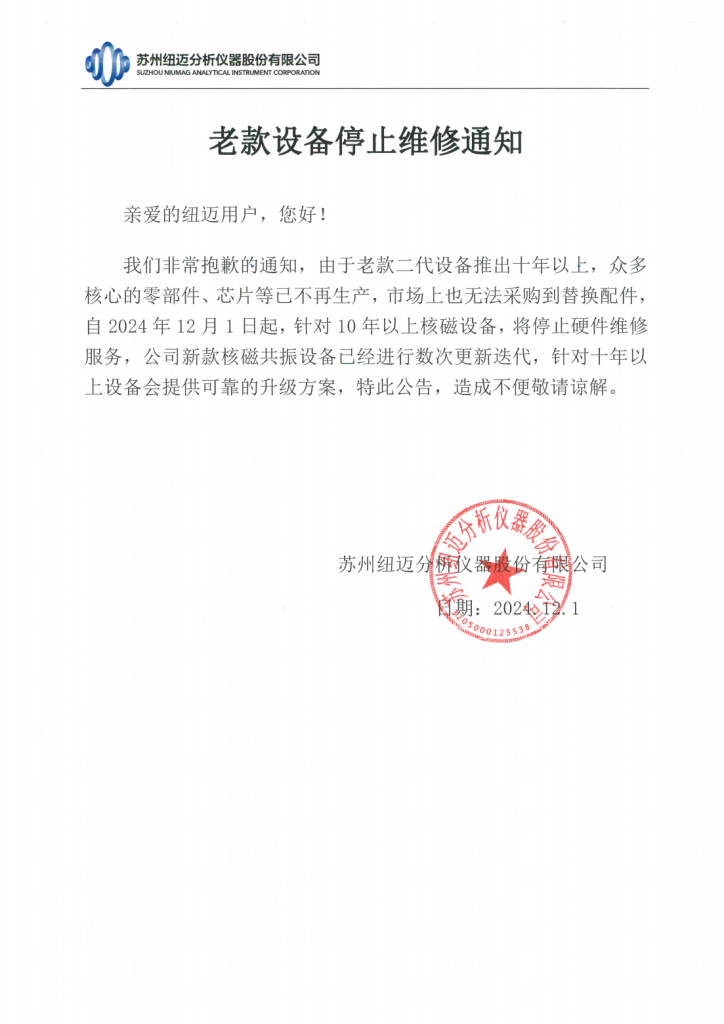 老款設(shè)備停止維修通知