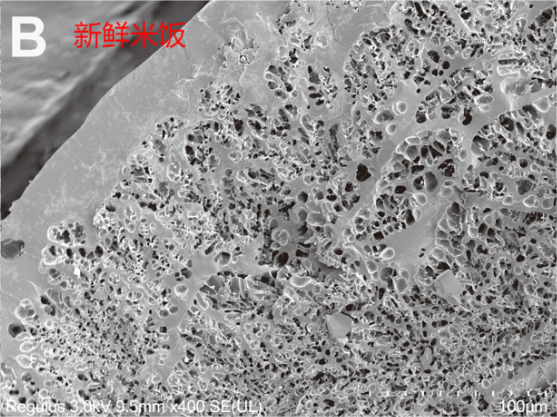 通過進一步的研究發現,冷藏后,保留胚乳的碾磨大米(PYM)的微觀結構中形成的冰晶尺寸更小,且分布更均勻。而完全碾磨的米飯冰晶更大且分布不均,嚴重破壞米飯的細胞結構和凝膠網絡,導致水分流失和質構劣化。其核心機制在于保留胚乳可能通過“油相重吸收”效應,有效抑制了自由水含量的增加,維持了水分分布的均勻性,并形成了更小、更均勻的冰晶,從而保護了米飯的微觀結構。這一研究成果為速凍米飯產業解決凍藏品質劣變的關鍵挑戰提供了重要的科學依據和技術思路,指明了通過原料預處理(保留胚乳)來提升速凍米飯品質的新方向,具有重要的理論意義和應用價值。