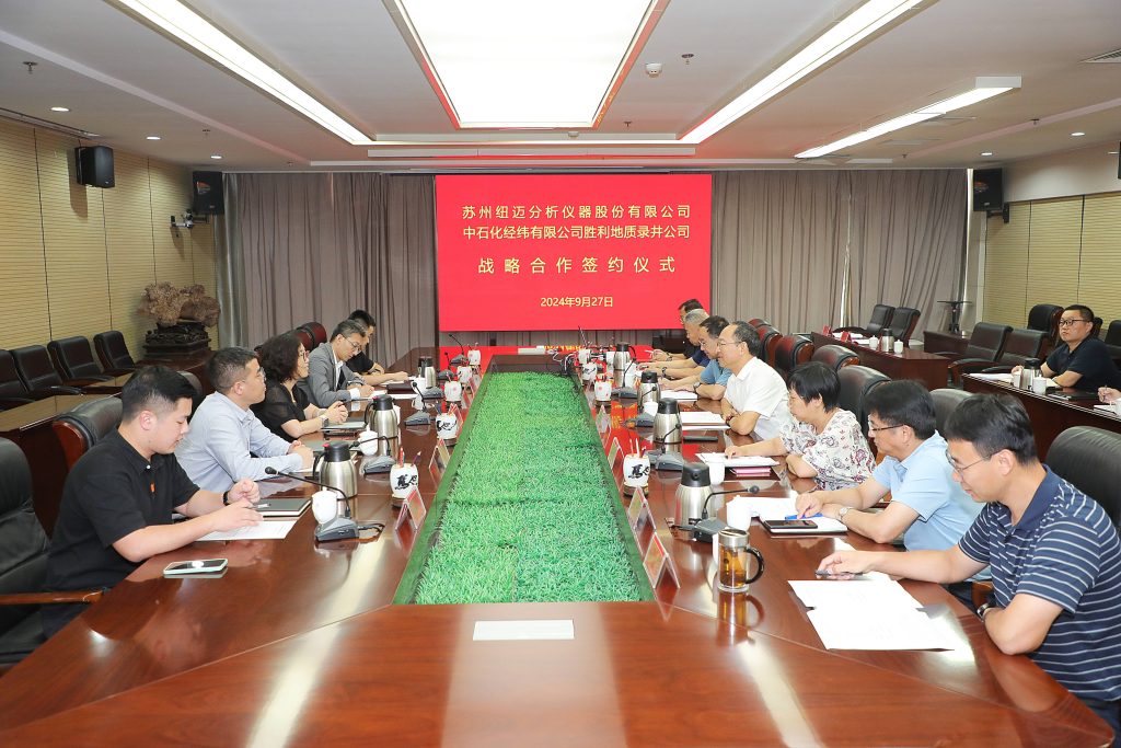 9月27日下午,紐邁分析與中石化經(jīng)緯有限公司勝利地質(zhì)錄井公司(簡稱勝利地質(zhì)錄井)正式簽署了戰(zhàn)略合作協(xié)議。勝利地質(zhì)錄井經(jīng)理趙建勇、紐邁分析總經(jīng)理李向紅共同出席并見證了這一重要時刻。勝利地質(zhì)錄井的高級專家兼副經(jīng)理張多文與紐邁分析的副總經(jīng)理張英力分別代表各自公司簽署了協(xié)議,標志著雙方正式建立了戰(zhàn)略合作伙伴關(guān)系。