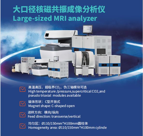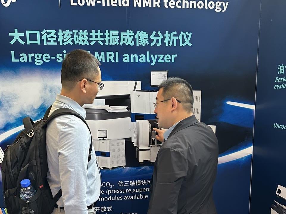 在為期數天的年會中,紐邁分析展示了其在多孔介質分析領域的研究成果和產品。紐邁團隊帶來的大口徑核磁共振成像分析儀以及中尺寸核磁共振成像分析儀,以其卓越的性能和創新的設計,吸引了來自世界各地的專家學者和行業伙伴的目光。低場核磁共振技術作為一種創新的無損檢測技術,它通過測量孔隙中含氫流體的弛豫信號,能夠精確地表征多孔介質的孔隙度、孔徑分布、流體飽和度以及滲透率等關鍵物理特性。不僅提高了多孔介質特性分析的準確性和效率,也為相關領域的研究和應用開辟了新的可能性。
