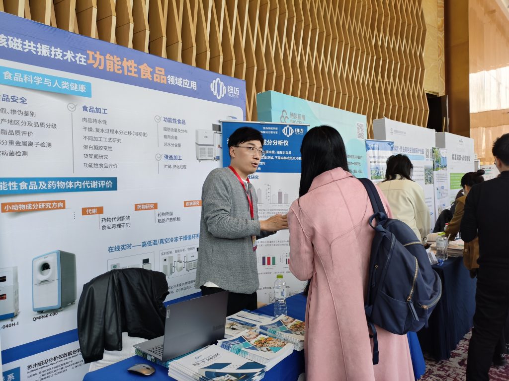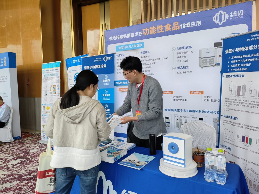 會議現場,紐邁分析作為一家專注于“低場核磁共振”技術開發及應用推廣的國家高新技術企業,展出了其自主開發的多款低場核磁共振儀器,助力功能性食品方向的開發與創新。紐邁分析多款自主研發設備不僅打破了國外進口設備的壟斷,還廣泛應用于能源巖土、食品農業、生命科學、材料與教學等多個領域,展現了其在科學儀器設備領域的專業實力和創新能力,憑借其設備高端、智能、綠色實驗的特點,成功吸引了與會專家學者與行業代表的關注。