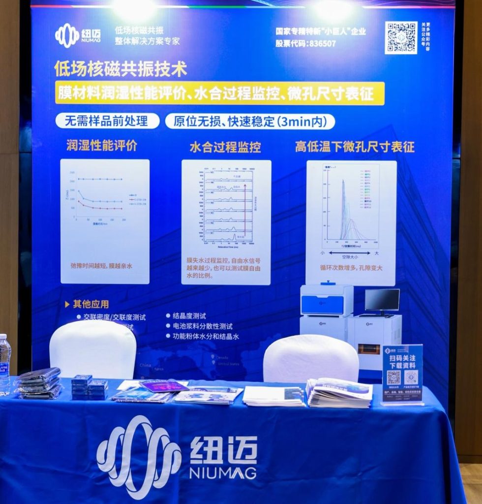 3 月 24 日,備受矚目的 “2025 第八屆新能源電池膜材料技術與市場論壇” 在蘇州合景萬怡酒店圓滿落幕。此次論壇匯聚了行業專家及企業代表,共同聚焦電池膜材料在新能源領域的前沿技術與市場應用,為行業搭建了重要的交流合作平臺。蘇州紐邁分析儀器股份有限公司(以下簡稱 “紐邁分析”)作為材料分析技術領域的佼佼者,攜低場核磁共振技術(LF-NMR)?驚艷亮相,向行業展示了其在膜材料潤濕性評價、水合過程監控及微孔尺寸表征等方面的解決方案,成為展會現場的一大焦點。