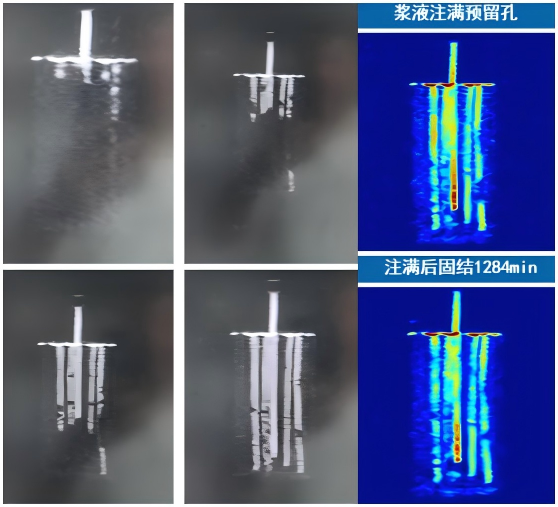 對注漿效果的評價,傳統方法中常在注漿完成后進行現場的滲透實驗判斷防滲性能;或鉆芯取樣,實驗室測量孔隙度滲透率等參數;或使用聲波技術輔助判斷孔隙填充度等等,這些技術往往都是在注漿完成,固化成型后進行監測,存在嚴重的滯后性,缺少了在注漿過程中的動態監測,對注漿的機理研究力有不逮。