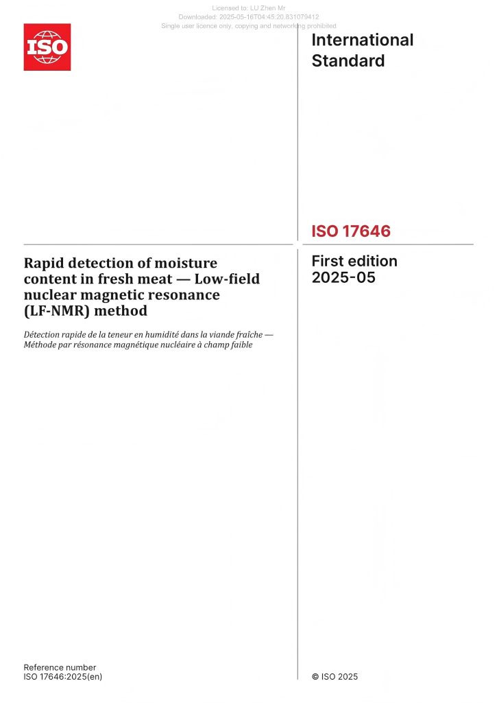 在全球食品檢測領域迎來重要技術革新——國際標準化組織近期正式采納并發布了首個采用低場核磁共振技術檢測肉類含水量的國際標準(ISO 17646:2025《鮮肉水分含量快速測定——低場核磁共振法》)。這一突破性成果由中國食品科學專家團隊主導完成,標志著我國在食品質量安全檢測技術方面已躋身世界先進行列。