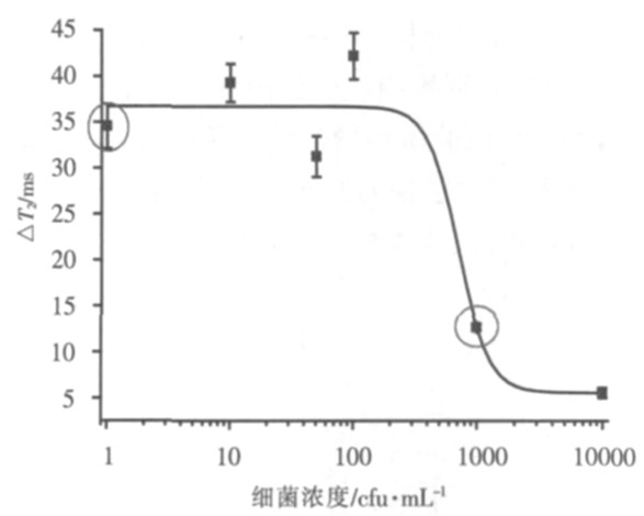 借助臺式小核磁低場核磁共振儀,結合納米傳感器,能快速檢測出樣本中的目標菌,由于免疫學特異性結合的特性,該方法對檢測靶標物有極高的靈敏度與特異性。同時,試驗所用的試劑簡單、普遍,能應用于不透明、復雜的食品介質。