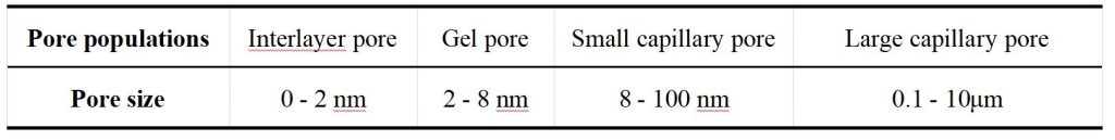表1.硬化水泥漿體內部孔隙分類及孔徑