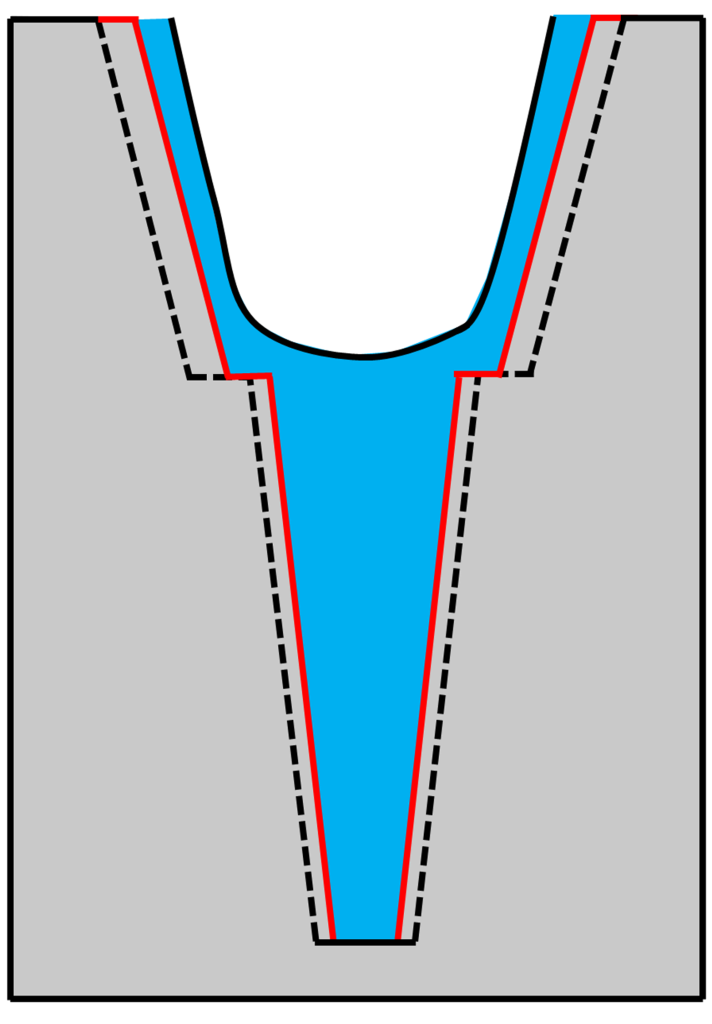 圖10 外壓力作用下孔結構的變化(注: 圖(b)中的虛線為受壓前孔壁的位置)