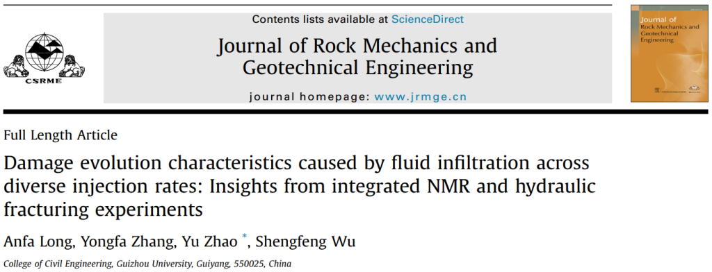 [1] Long A, Zhang Y, Zhao Y, et al. Damage evolution characteristics caused by fluid infiltration across diverse injection rates: Insights from integrated NMR and hydraulic fracturing experiments[J].Journal of Rock Mechanics and Geotechnical Engineering[2025-06-18].
