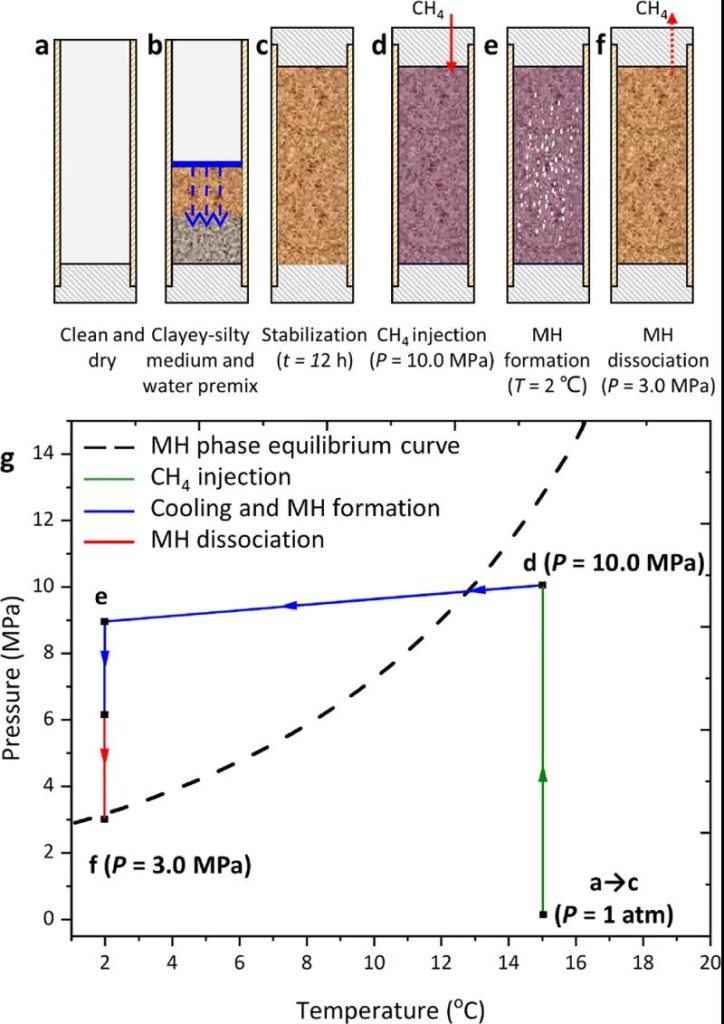 該研究揭示了小粒徑黏土礦物影響下,甲烷水合物生成與分解對泥質(zhì)粉砂多孔介質(zhì)孔隙結(jié)構(gòu)與孔隙水運(yùn)移的作用機(jī)理。研究結(jié)果為后續(xù)安全高效開采泥質(zhì)粉砂型天然氣水合物提供了基礎(chǔ)實(shí)驗(yàn)數(shù)據(jù)和理論指導(dǎo)。