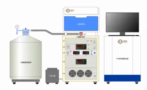 原位變溫低場核磁共振系統(tǒng)是在常規(guī)低場核磁共振系統(tǒng)上加配了變溫探頭、控溫硬件以及控溫軟件。系統(tǒng)樣機如下圖: