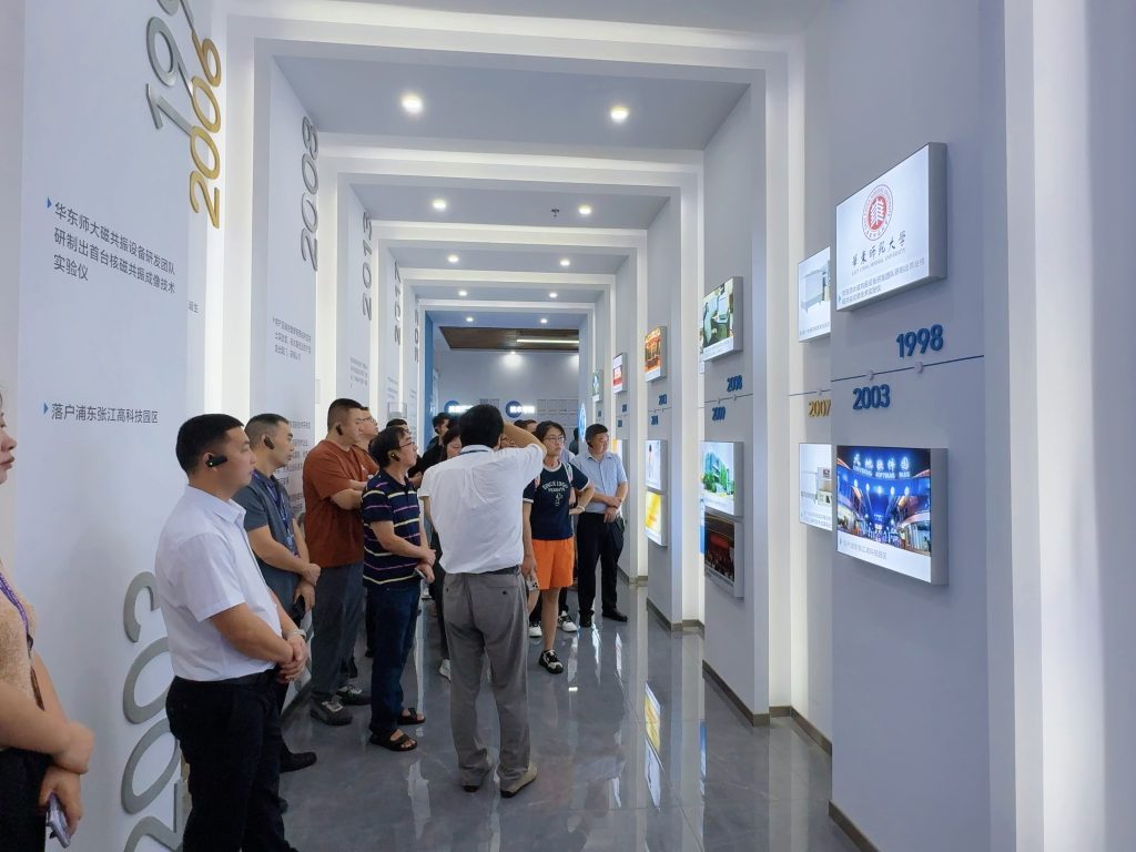 在紐邁分析董事長楊培強的引導下,綿陽企業家代表團先后參觀了紐邁歷程、設備展廳、客戶體驗中心和產品生產線,從技術研發、產品制造到應用服務,全方位的了解了紐邁分析的發展歷程與創新成果。